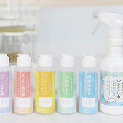 同社は「幸日堂」を展開するに当たり、前述の水性洗浄剤を万能クリーナーの「おそうじ水」としてメイン商材に据えた他、「陶器洗面台」や「キッチンシンク」「浴室水あか」「キッチン換気扇」「エアコン室外機(塗装面の色ツヤ回復)」などの各種洗浄剤をラインアップ。それぞれ単独商品として、また贈答用にも利用しやすい6本セットでも用意した。