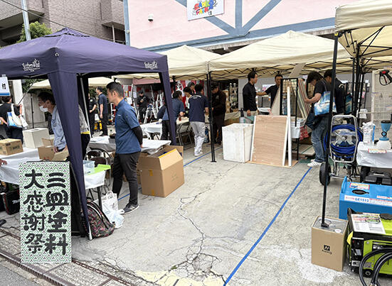 「よりすぐりの情報をいち早くお客様にお届けしたい」(清水社長)と毎年この時期に開催している三興フェア。刷毛やローラーの新製品や実演コーナー、アウトレット品の超格安特売コーナー、「お客様に喜んでいただきたくて」と同社の社員がセレクトした商品を並べた三興コーナーなど盛りだくさんの内容で展開。来場者にフレンドリーなフェアの光景が広がった。