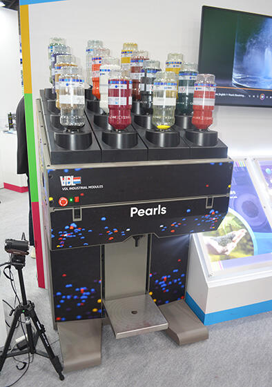 色と光の専門商社である山本通産は、欧州発の固体着色剤システム「Pearls」を前面に押し出した展示を行い、実演時には多くの来場者が足を止めていた。