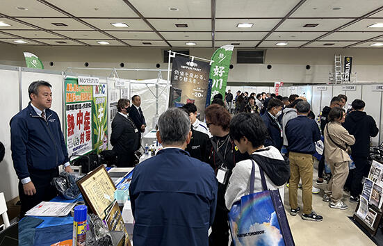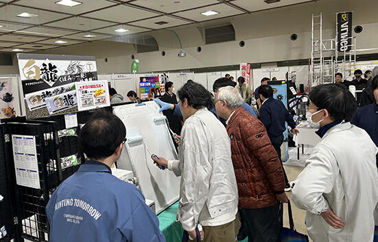 今展のテーマは"彩りで拓く未来社会~ナガヤの挑戦~"。「前回より会場スペースを大きくし、出展企業も増えました」と話すのは実行委員長の宮村勇希氏(営業部)。メーカー、商社など52社が出展参加した他、イベントステージには、お笑い芸人の「ねづっち」を招き、得意の即興なぞかけを披露し来場者を楽しませた。