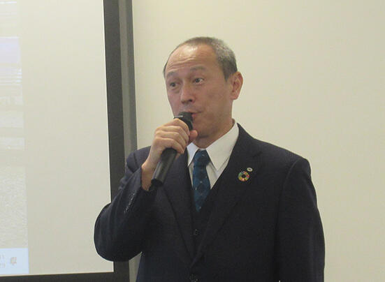 冒頭、宮越一郎会長は「昨年はABA設立10周年として福岡の地で勉強会を開催しました。続いて今年初めての地である大阪で開催するに至りました。今回のテーマはカーボンニュートラルとしましたが、世界的な潮流のこの動きの中で我々の事業活動においてどのように取り組むべきか、それぞれの立場で解が見つかれば良いと思っています」とあいさつした。