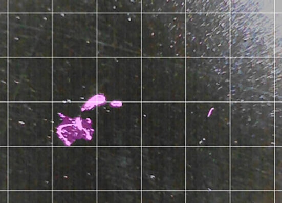 現状、ゴミブツ検査は目視で行われている。通常、クライアントから『3cm角内に面積0.4mm2以上のゴミブツが3個以上あれば不適合』といった具合に明確な基準が設定される。微細な欠点候補のサイズの判別には、大きさや長さの指標(ゲージ)が印刷されたフィルムドットゲージを用いる。これをゴミブツの実物と照らし合わせ、基準に適合しているかを判断する。