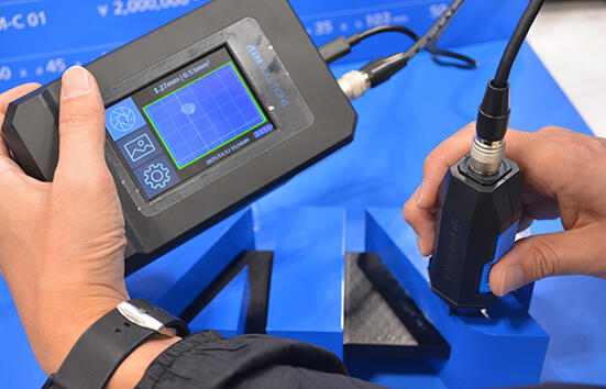 デジタルドットゲージは、ゴミブツを接写するためのカメラ内蔵のプローブ(50g)と、撮影画像を映すモニター(390g)からなる。検査員が片手でゴミブツを撮影し、もう片方の手で持ったモニターで撮像結果を確認するのが基本の使い方だ(写真1)。