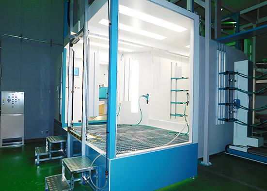 ライン用のシステムはMS粉体ブースシステムとして提案する。色数や製品の多様性に加えて、少量生産にも対応できる最適な粉体塗装システムを展開していく。