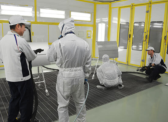 日常業務で「nax E-CUBE WB」を使用している参加者は「新製品のクリヤーは塗りやすい。今後も使ってみたい」と感想を述べ、今後の活用に意欲を示した。また、普段は同社の溶剤系ベースを使用しているという参加者は「水性ベースの使用感は溶剤系とあまり変わらないことが分かった。こうした気付きが得られる機会はなかなかないので、有意義な企画だと感じた」とコメントした。