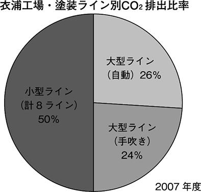 アイシングループでは環境配慮の観点からCO2及びVOC排出の削減目標を設定し省エネに取り組んでおり、その中で塗装ラインがある衣浦工場での対策に注力している。