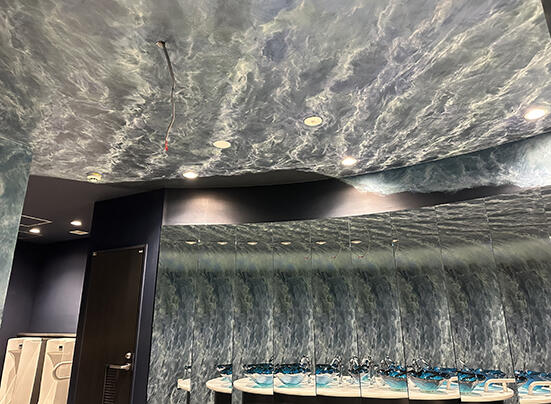 HUSはヨーロッパの意匠性塗料を用いたデコラティブペイントを得意としており、個人住宅や店舗などを手掛けることが多かった。カドワキカラーワークスのグループ会社となったことで、ゼネコン関連の大型建物の内装やエントランスなど手掛ける現場の幅が広がっている。その背景にあるのが意匠性ニーズの高まりだ。