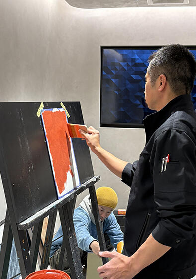 特殊塗装を得意とするペインターなどこれまで400名近くが受講し、VALPAINTの施工をマスター。カラーワークスではそれら修了者に対して定期的にフォロー講習を行っており、今回新たにラインアップしたVALPAINTの2つの塗料について、施工方法をレクチャーした。