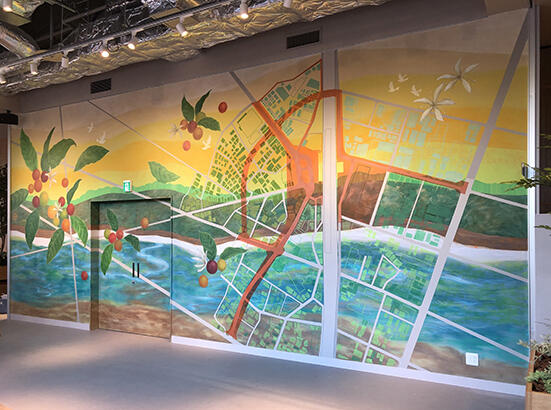 「私たちはアートの制作を通じて、その空間を、その地域を心豊かな場所にしたい、そんな思いで活動を続けているアーティスト集団です。エイジングやフォーフィニッシュ(疑似塗装)、トロンプ・ルイユ(だまし絵)やステンシルや絵画的なアプローチなど、さまざまな技法を用いたデザインペイントや特殊装飾ペイント、壁画、ギルディング(箔)、コミッションアート、ヒーリングアートなど創作活動は多岐にわたります。中でも最近は、建物や施設のオーナーさんなどクライアントから直接ご依頼いただいて、デザインのコンセプトづくりから始めるコミッションアートの比率が高まっていますね」