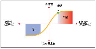 消泡剤は、低い表面張力を有する液体であり、くわえて消泡剤がラメラに浸入することに関連する浸入係数と、消泡剤がラメラ内部に拡散することに関連する拡散係数の、三つの特性を持たなければならない。
